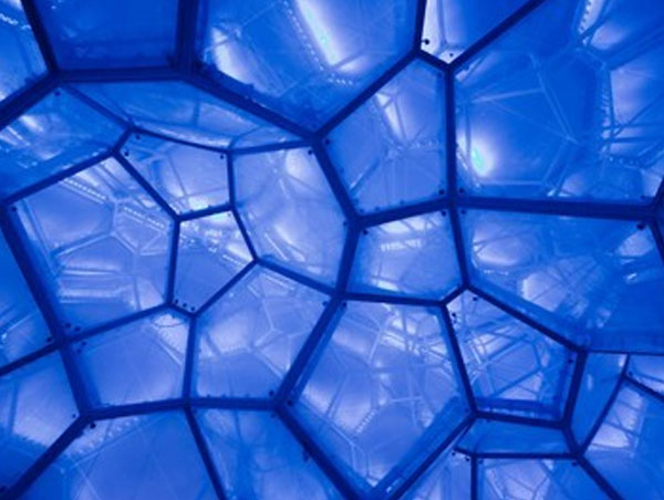 "Water cube" is a very typical inflatable membrane structure architecture, its appearance is composed of a number of different sizes, shapes, rise of ETFE air pillow, the pale blue membrane and the inner layer of the outer use plating film in sunlight let ETFE air pillow appears two highlights, more reflects the characteristics of the blisters. This unique to light control technology, makes the "water cube" has become the world's unique architectural form, showed no happened in the overall architecture of the artistic effect. Air pillow though different sizes at the same time, the high-profile split vector control within the span of 12 to 15 $%, this is the overall effect, the stereo sense is more obvious, the expressive force of building more rich.