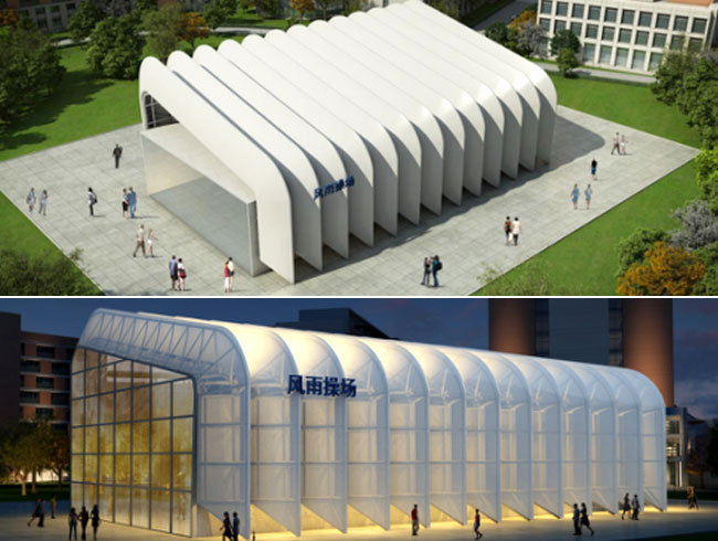 By more than a few famous venues as you can see, the membrane structure as the exterior wall decoration, its modelling can be more modern, more bold, more dynamic.