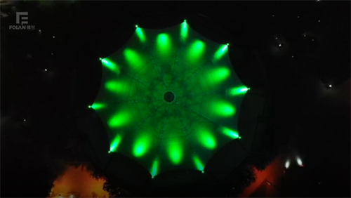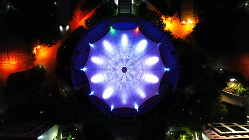 陜西榆林市委會議中心膜結(jié)構(gòu)項目,佛蘭空間2020年完工項目。采用進口PVDF膜材,跨度50M,面積約1962.5平方米,鋼結(jié)構(gòu)為桁架結(jié)構(gòu)形式。項目設(shè)置有10盞LED泛光燈,夜晚猶如含苞待放的“水蓮花”,為市委增加了一道靚麗的風(fēng)景線。
