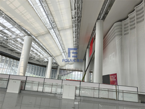 近期,佛蘭空間正在施工的虎門高鐵站精裝修室內天花吊頂就運用了PTFE軟膜。