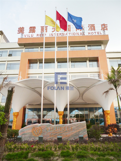 膜結(jié)構(gòu),憑其輕盈的結(jié)構(gòu),獨特的造型,已廣泛應用于酒店建筑中,比如膜結(jié)構(gòu)酒店門頭、膜結(jié)構(gòu)建筑外墻、膜結(jié)構(gòu)屋頂以及膜結(jié)構(gòu)天花吊頂。酒店建筑運用膜結(jié)構(gòu),不僅造型獨特,還能營造明亮、溫馨、別具一格的室內(nèi)環(huán)境。