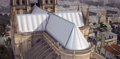 2019年,在巴黎圣母院屋頂線建筑競賽中,就有2個膜結(jié)構(gòu)建筑屋頂方案特別惹人眼球,膜結(jié)構(gòu)的運用,使得莊嚴肅穆的教堂增添了些許現(xiàn)代時尚感。