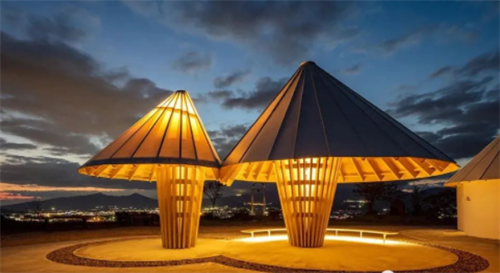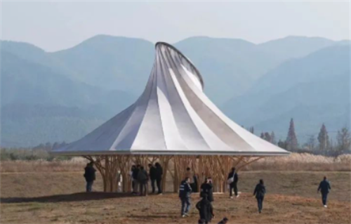▲膜結(jié)構(gòu)酒店門頭,佛蘭空間已竣工項目,喇叭花造型,結(jié)構(gòu)輕盈,已成為當?shù)氐貥诵跃频辍?/span>