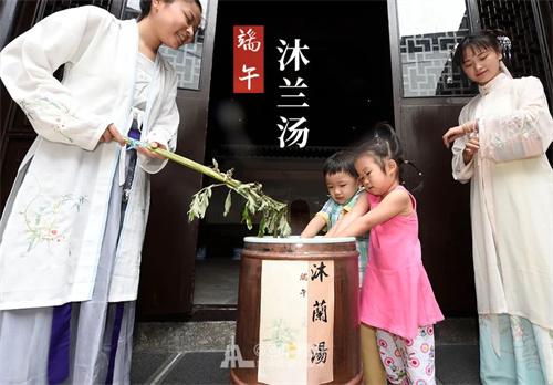 《大戴禮記》中說(shuō):“五月五日,蓄蘭為沐浴?!碑?dāng)時(shí)的蘭不是現(xiàn)在的蘭花,而是菊科的佩蘭,有香氣,可煎水沐浴。時(shí)至今日,在我國(guó)廣東、湖南、廣西等地,人們用艾、蒲、鳳仙、桃葉等煮成藥水洗浴,據(jù)說(shuō)可以治皮膚病,去邪氣。