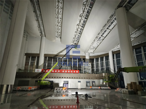 該工程位于東莞市虎門鎮(zhèn)白沙村,是東莞唯一的高鐵、城際、地鐵三軌合一的交通樞紐,被定位為“東莞新地標,灣區(qū)新門戶”。項目由中鐵參與建設(shè),佛蘭空間膜結(jié)構(gòu)負責(zé)其南北站房的室內(nèi)軟膜天花吊頂安裝工程。
