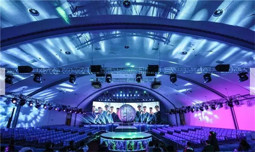 2019年“琴嶼秀”演出的室內(nèi)版水上舞臺便是在這多功能廳搭建的,國宴廳頂部大曲面的波浪造型象征海浪,有序變化的燈帶以海鷗圖形做點綴,室內(nèi)門采用白銅蝕刻泰山圖案,銅質(zhì)水紋雕刻的貝殼做門把手,體現(xiàn)海洋文化、青島特色,營造了愉悅、歡快的迎賓氛圍,室內(nèi)面積超過1000平米,具備了搭建演出平臺的良好基礎(chǔ)。
