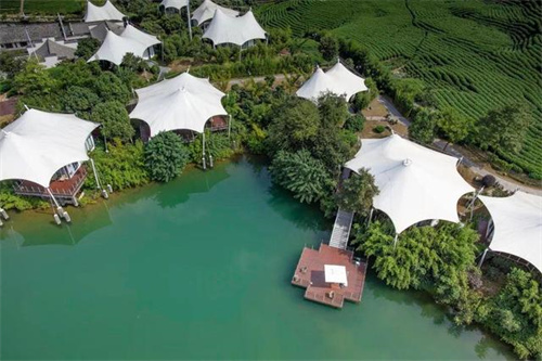 膜結(jié)構(gòu)憑其輕巧獨(dú)特的造型,已廣泛用于休閑旅游場(chǎng)景,比如常見的膜結(jié)構(gòu)大門入口,過道、景觀小品、停車棚,帳篷酒店,餐廳、表演舞臺(tái)、游戲場(chǎng)所等,這些膜結(jié)構(gòu)不僅為游客提供休息、觀景的舒適場(chǎng)所,還能自成一景,供游客欣賞。