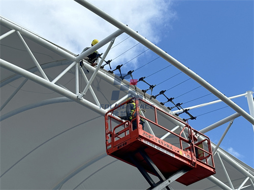 膜結(jié)構(gòu)球場,使用的膜材是可回收的環(huán)保材料,在施工過程中,大部分材料都可在工廠內(nèi)預(yù)制完成,現(xiàn)場只需進(jìn)行安裝作業(yè),也減少了建筑垃圾的產(chǎn)生和運(yùn)輸過程中的碳排放。另外,得益于膜材的透光性和隔熱性,膜結(jié)構(gòu)建筑夏天能減少照明和空調(diào)設(shè)備的使用,冬天能減少取暖設(shè)備的使用,從而有效降低能耗。