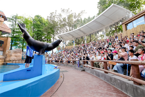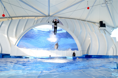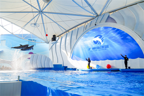 廣州海洋館升級改造后,在精靈海灣(海豚表演場)和海獅館分別使用了膜結(jié)構(gòu)頂棚,既能有效阻擋紫外線,又能在雨天提供遮蔽,確保游客在觀看海豚、海獅等表演時不受天氣影響。