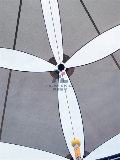 而“網(wǎng)格”形態(tài),則兼顧了透光與透氣:既有效遮陽,又促進空氣流通,提升下方空間的體感舒適。這對佛蘭膜結(jié)構(gòu)的張拉施工提出了極高要求——唯有精準控制,才能在輕盈材質(zhì)上塑造出均勻、飽滿的完美曲面。