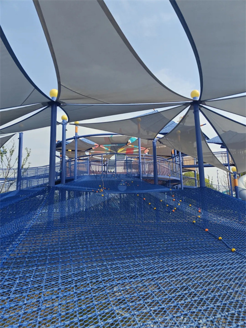 涂層賦予膜材出色的耐久性、抗紫外線能力與自潔性能。這意味著,這片彩色天幕不僅能從容應對衢州的日曬雨淋,更能在雨水沖刷下煥然如新,為樂園的長期運營減負。