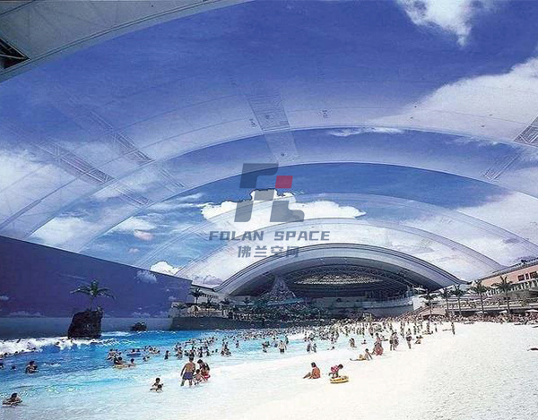 通過大型的造波設(shè)備和大規(guī)模的膜結(jié)構(gòu)屋頂創(chuàng)造出超過天然景觀的人造景觀。海洋穹頂是世界上大的室內(nèi)水上樂園項(xiàng)目之一。
