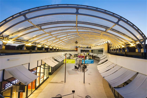 ▲零售店街道被ETFE氣枕系統(tǒng)覆蓋,營造出迷人的透明屋頂,為游客提供輕松的購物體驗(yàn)。