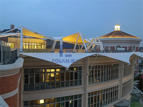 ▲佛蘭空間項(xiàng)目:廈門幼兒園扇形中庭膜結(jié)構(gòu)工程(PTFE膜材)