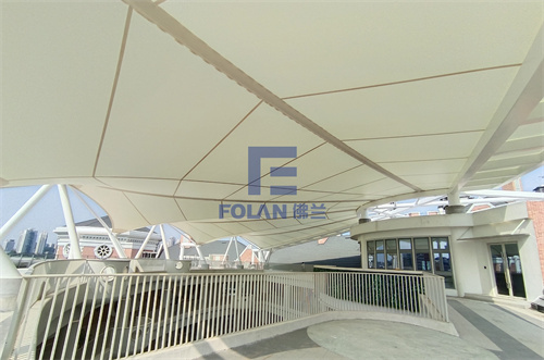 不同于大多數(shù)固體建筑材料,PTFE膜材可通過不同的張拉和固定方式,創(chuàng)造出各種形態(tài)的建筑造型,可以是曲線、弧線、折線等多樣化的形狀,滿足建筑師對(duì)獨(dú)特外觀和創(chuàng)新設(shè)計(jì)的需求。
