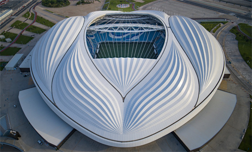 卡塔爾AlJanoubStadium體育場(chǎng)是座可容納4萬(wàn)人的足球場(chǎng),體育場(chǎng)的可伸縮式屋頂采用了PTFE膜材,展開時(shí)屋頂就像一個(gè)船帆,覆蓋在球場(chǎng)的上方,為夏天足球比賽創(chuàng)造了一個(gè)遮蔽的環(huán)境。