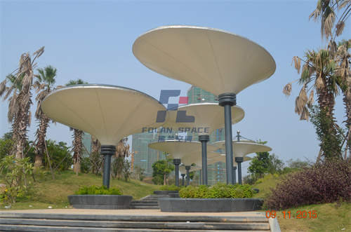 此外,還能利用膜結(jié)構(gòu)進(jìn)行文化展覽、商業(yè)展覽。佛蘭空間去年竣工完成的車棚,就曾用于商業(yè)展覽活動,各式各樣的商品陳列在膜結(jié)構(gòu)車棚下,陰涼舒適,來往的行人可自由自在地穿梭其中,慢慢欣賞、挑選。