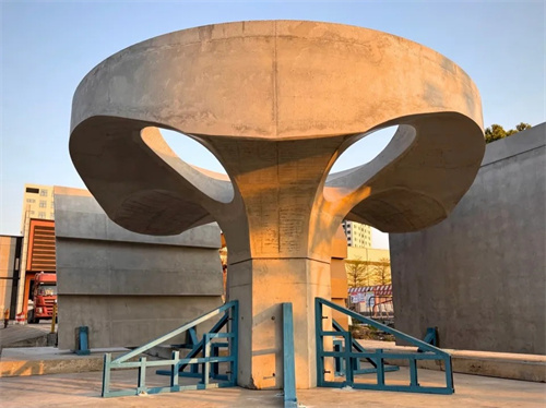 從空氣負(fù)形到蘑菇混凝土實(shí)體,該建筑模板由多組異形充氣氣囊構(gòu)成,通過精準(zhǔn)控制氣囊的負(fù)空間造型,使?jié)仓尚偷幕炷帘砻娉尸F(xiàn)出巴洛克建筑”剖碎空間”般的流動(dòng)肌理。這種創(chuàng)新工藝重新詮釋了建筑實(shí)體與過渡空間的關(guān)系,將動(dòng)態(tài)力量可視化于凝固的混凝土形態(tài)之中。