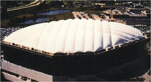 美國(guó)密歇根州龐蒂亞克銀頂體育館,曾是世界最大氣承式穹頂,跨度達(dá)168米,1975年建成,2017年拆除。