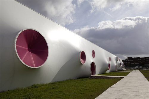 設(shè)計(jì)這項(xiàng)運(yùn)動(dòng),觀眾的肉眼很難看輕,因此設(shè)計(jì)的重點(diǎn)希望通過動(dòng)態(tài)的弧形空間表達(dá)出這個(gè)運(yùn)動(dòng)的動(dòng)態(tài)和精密。設(shè)計(jì)允許三個(gè)場(chǎng)館進(jìn)行移動(dòng),重組,因此沒有使用任何粘合劑。半透明的外墻減少了人工照明的需求,同時(shí)彎管設(shè)計(jì)達(dá)到完全自然通風(fēng)。
