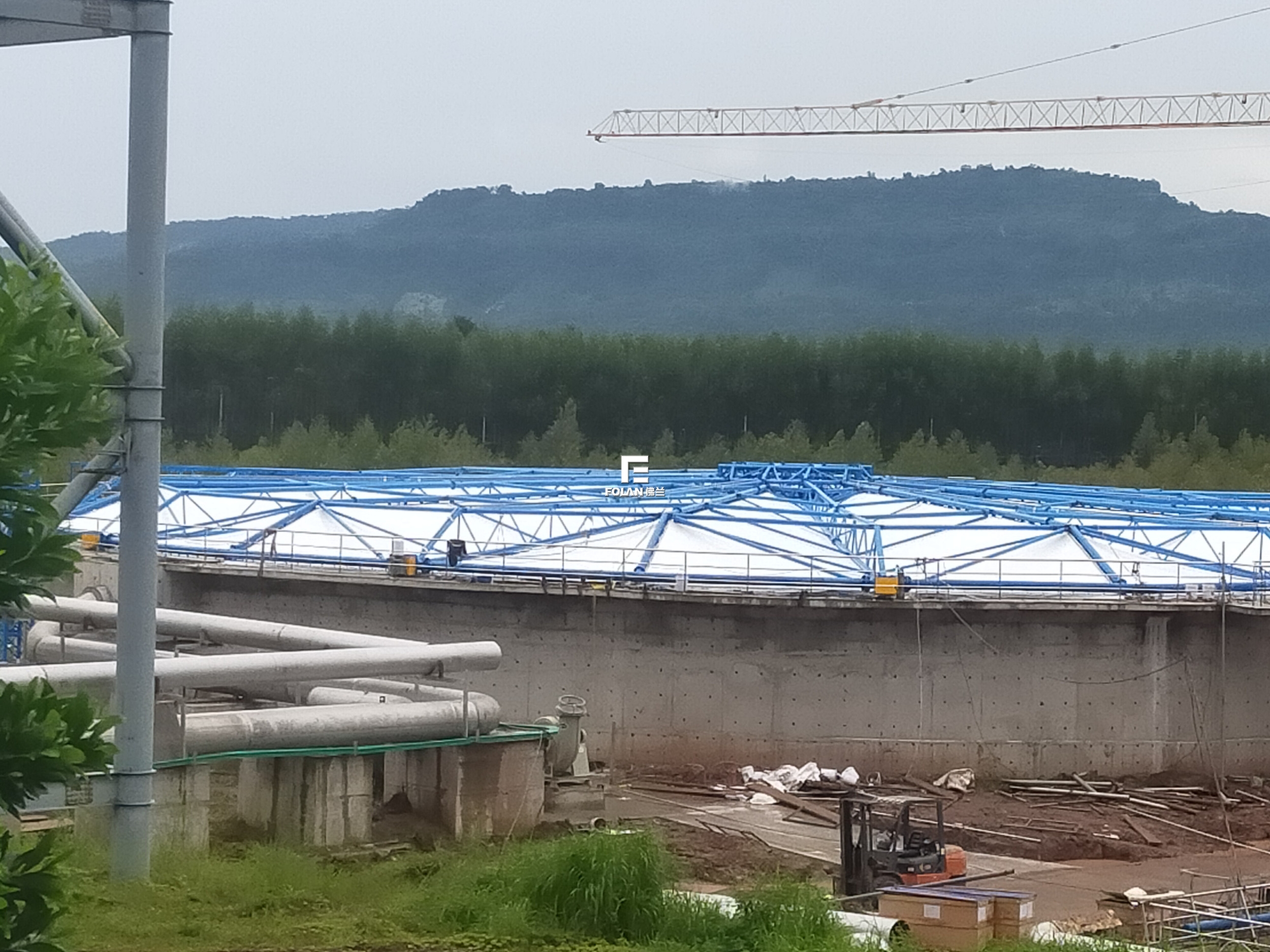 太陽紙業(yè)--老撾隨動(dòng)式污水池加蓋項(xiàng)目,直徑50M,鋼用量70T左右。單體面積1962.5M2