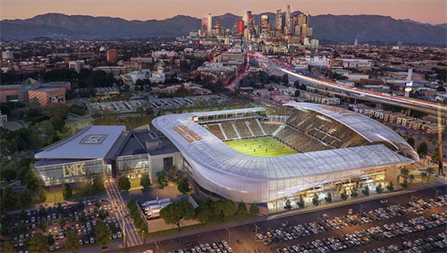 加州銀行體育場(chǎng)屋頂采用了ETFE膜結(jié)構(gòu),一共覆蓋了18000平方米的ETFE薄膜。ETFE,一種俗稱“軟玻璃”的膜材,透光率極高,能讓球迷們?cè)诿髁恋囊曇爸杏^看比賽。另外,體育場(chǎng)看臺(tái)座椅是以34度傾斜打造的(MLS中最陡峭的座位之一),足以給球迷們沉浸式的體驗(yàn)。