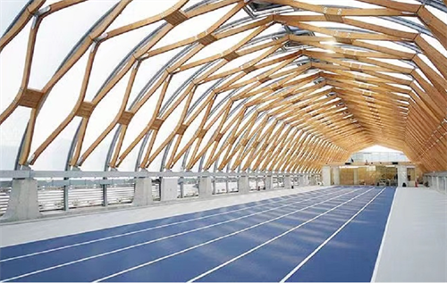 新豐洲跑步館是日本第一家使用ETFE薄膜的體育場(chǎng)館,與其搭配的結(jié)構(gòu)支撐材料除了常用的合金框架外,還使用了松木框架。這使得整個(gè)建筑有更親人的感官體驗(yàn),同時(shí)還提高建筑的輕盈感。