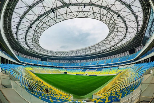 該體育場(chǎng)外觀采用的ETFE氣枕超10萬(wàn)平米,是目前世界上僅次于北京水立方膜結(jié)構(gòu)面積的大型單體建筑。
