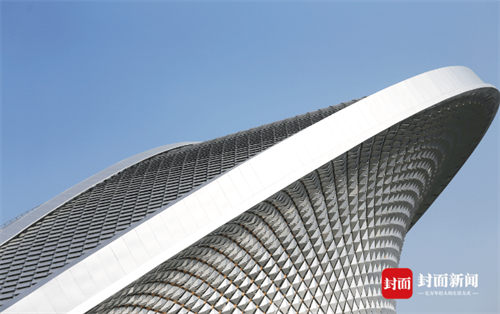 主舞臺(tái)幕墻采用1743塊四棱錐雙曲面鋁板幕墻與3340塊魚鱗疊加鋁板屋面,有種鳳凰羽毛的即視感。