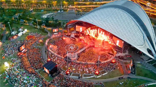 成都露天音樂公園占地31.77萬平方米,總建筑面積約3.4萬㎡。全園分布了多個(gè)規(guī)模不同、主題不同的音樂表演區(qū)。位于公園南北方向轉(zhuǎn)折的中心位置,便是可容納4萬余人戶外觀演的主舞臺(tái)。