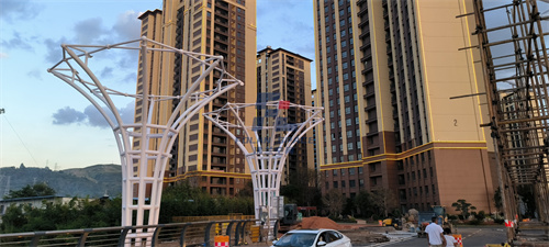 為提升小區(qū)時尚美觀性及豐富小配套服務(wù),業(yè)主方在小區(qū)興建了兩處膜結(jié)構(gòu)大門,其中一處呈拱型,簡約大氣。另一處呈喇叭花型,四朵喇叭花拽拉著兩個吊帽,造型獨(dú)特。