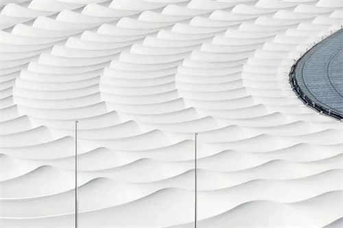體育場屋頂由兩個(gè)鋼筋結(jié)構(gòu)的薄片板對(duì)接而成的,每個(gè)都有31000平方米的面積。上邊的薄片由76個(gè)部分組成,一共有1158片玻璃,每片都重達(dá)200公斤,這些玻璃是這個(gè)屋頂?shù)淖詈蠼M成部分,這個(gè)屋頂自身就有20層建筑保護(hù)。