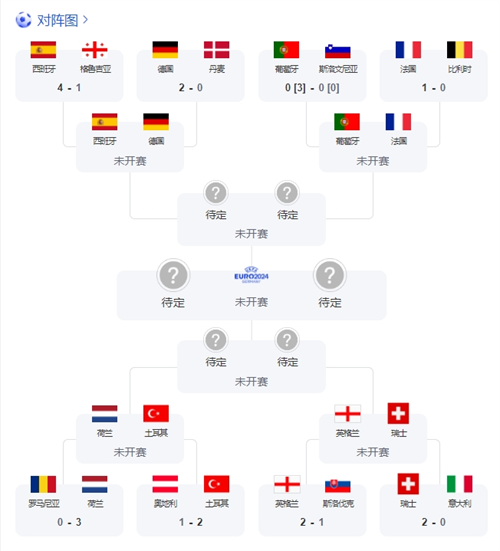 至此,本屆歐洲杯八強(qiáng)全部產(chǎn)生,1/4決賽對(duì)陣也已出爐,具體賽程如下(北京時(shí)間):