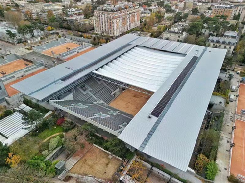 新建的蘇珊·朗格倫網(wǎng)球場(chǎng)增設(shè)了可以電動(dòng)開合的屋頂,球場(chǎng)屋頂?shù)脑O(shè)計(jì)旨在為比賽提供一個(gè)穩(wěn)定的比賽場(chǎng)地,通過電動(dòng)開合的方式輕松應(yīng)對(duì)天氣的變化,為巴黎奧運(yùn)會(huì)的舉辦帶來便捷并點(diǎn)燃活躍其氛圍。