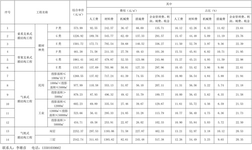 四、關(guān)于材料價(jià)格,本指標(biāo)中G類、P類膜材及其他材料均考慮為國產(chǎn)合格產(chǎn)品,而E類膜材則按進(jìn)口合格產(chǎn)品考慮。