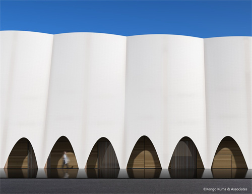 外立面的鏤空木結(jié)構(gòu)致敬日本細(xì)木拼接工藝,白色織物隨風(fēng)輕揚(yáng),既似阿拉伯商船的帆,又像覆蓋在建筑上的“面紗”,在陽(yáng)光下投射出流動(dòng)的光影,宛如一首寫(xiě)在海風(fēng)中的詩(shī)。