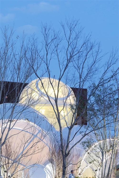 瑞士館的設計靈感源自于自然,旨在展示人類與自然和諧共存的美好愿景。整個展館由五個PVC與ETFE構成的雙層膜結(jié)構充氣輕質(zhì)球體組成,這些球體相互連接,仿佛是大自然中的一顆顆珍珠,被巧妙地嵌入了一片綠意盎然之中。這種設計不僅美觀大方,更體現(xiàn)了瑞士對于環(huán)保和可持續(xù)發(fā)展的深刻理解。